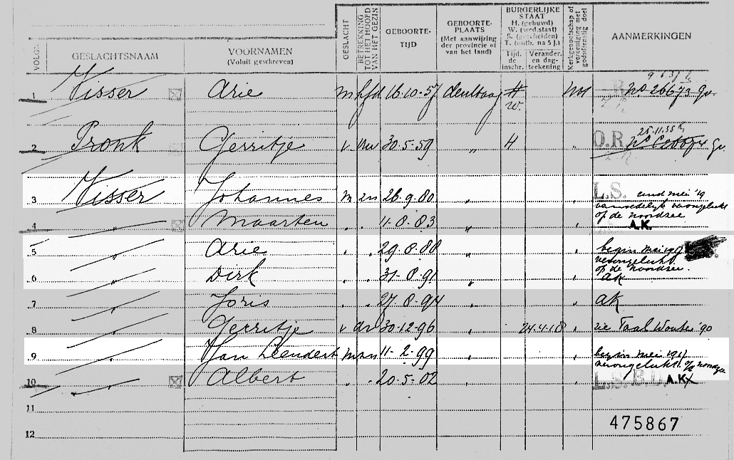 De broers Johannes- en Dirk Visser verloren eerder in mei 1917 hun broers Arie- en Jan Leendert op de HVH-2 'Simon'. Hun ouders -het echtpaar Visser-Pronk- verloren dus vier zoons. Zie daarvoor Algemeen afbeelding 5.