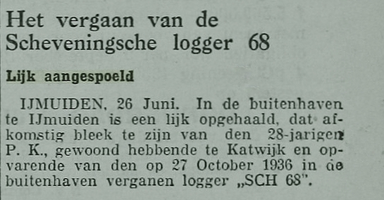 * Pieter Kuiper werd op 25 juni 1937 uit de buitenhaven van IJmuiden opgebaggerd.
