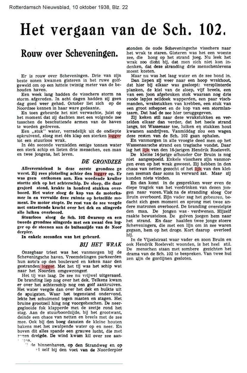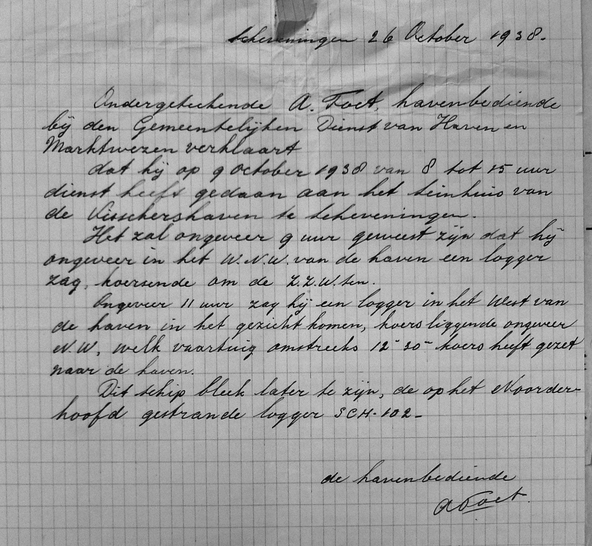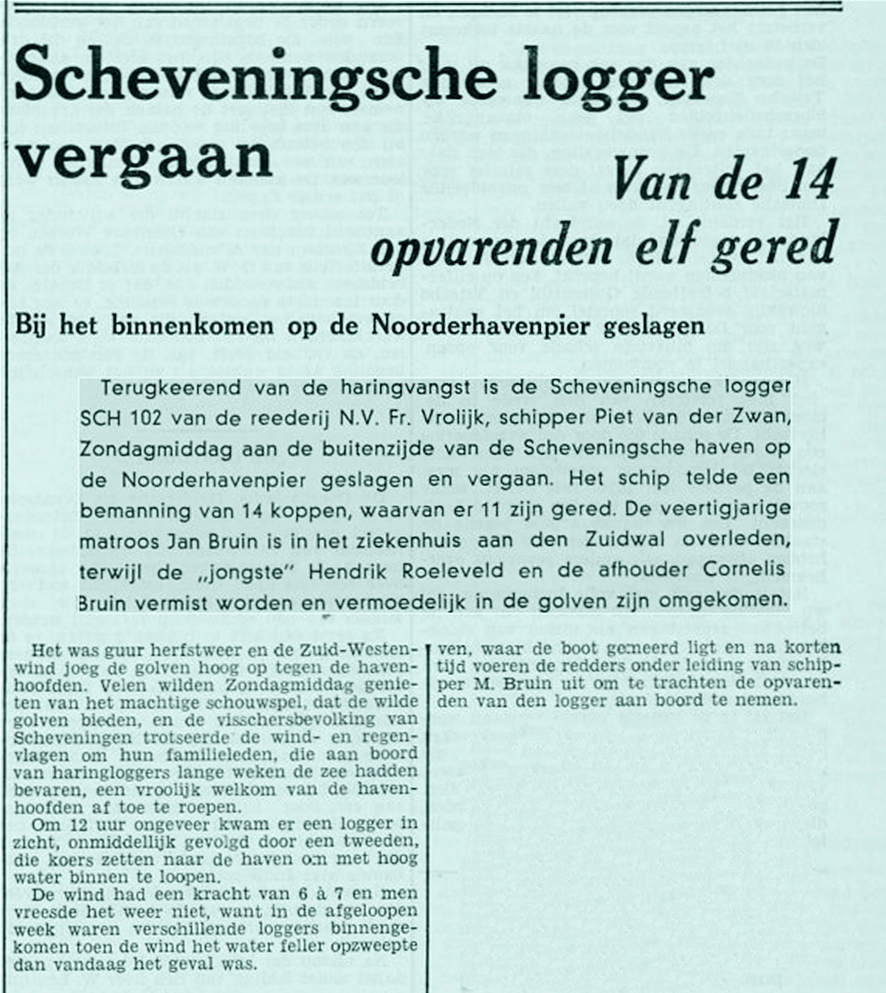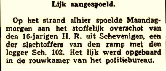 * Hendrik Roeleveld spoelde nog op dezelfde dag op het strand bij Wassenaar aan.