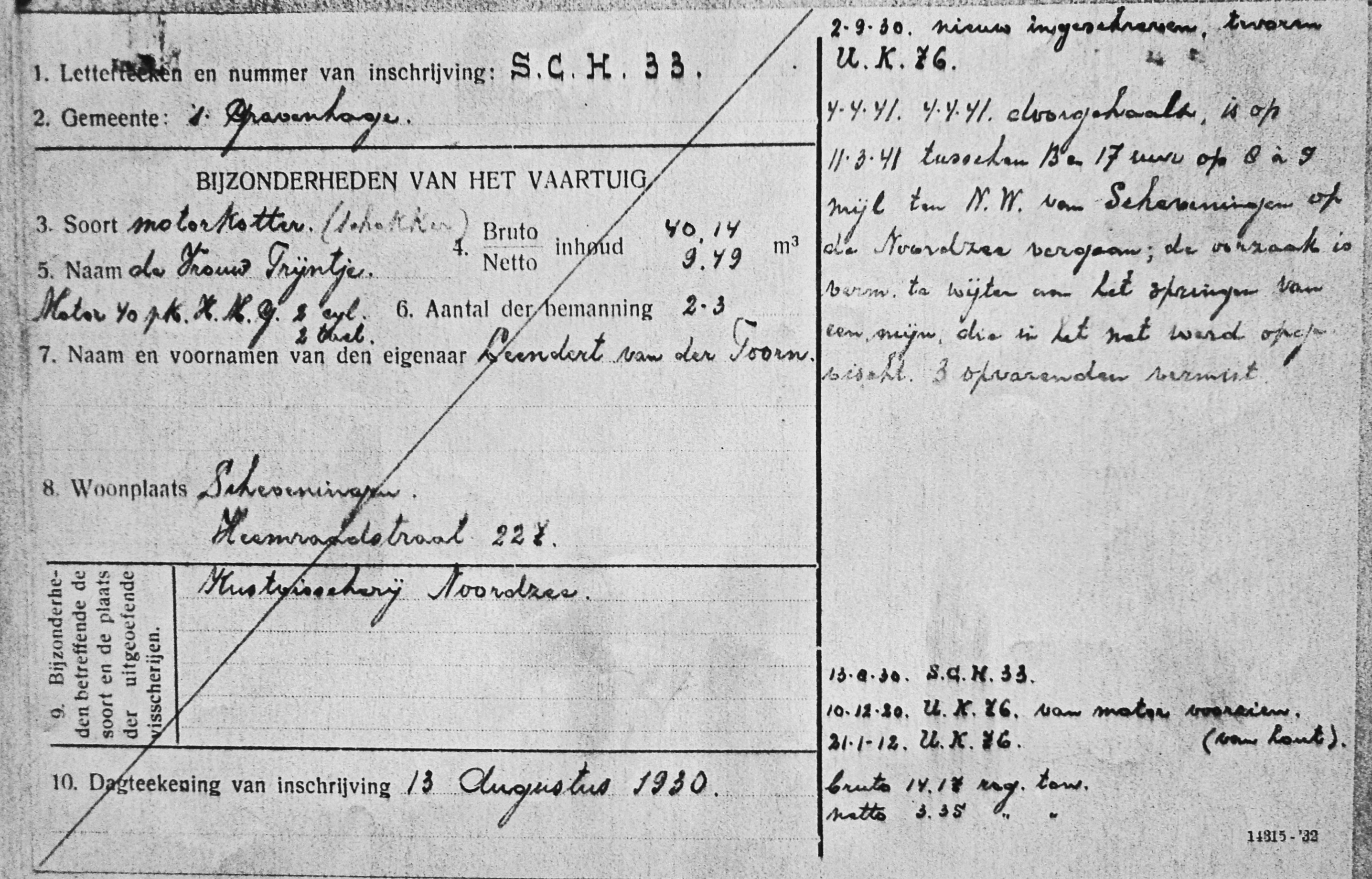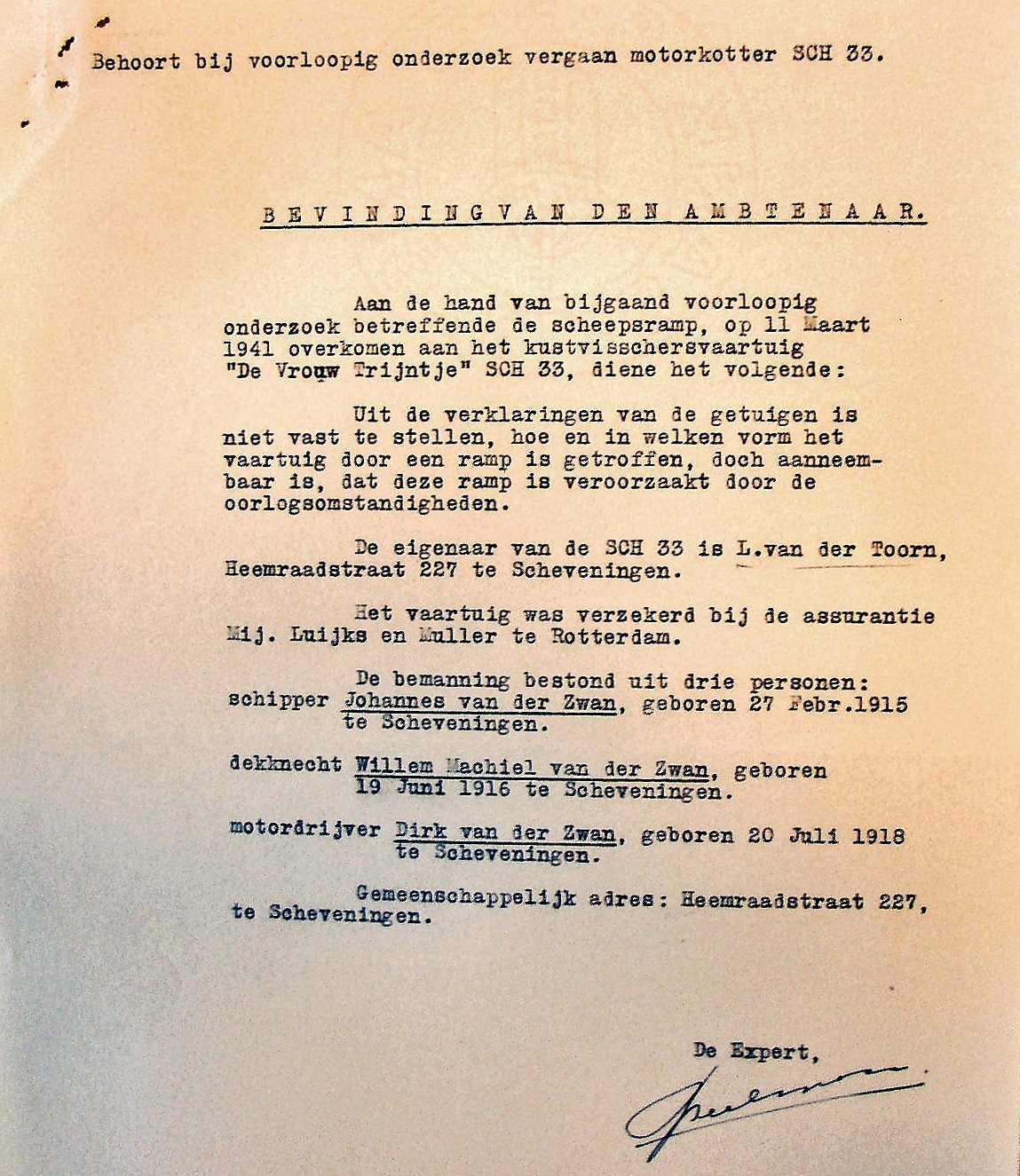 Hun vader -Willem Johannes van der Zwan- verdronk in augustus 1918 op de SCH 402 'Huibertje'.