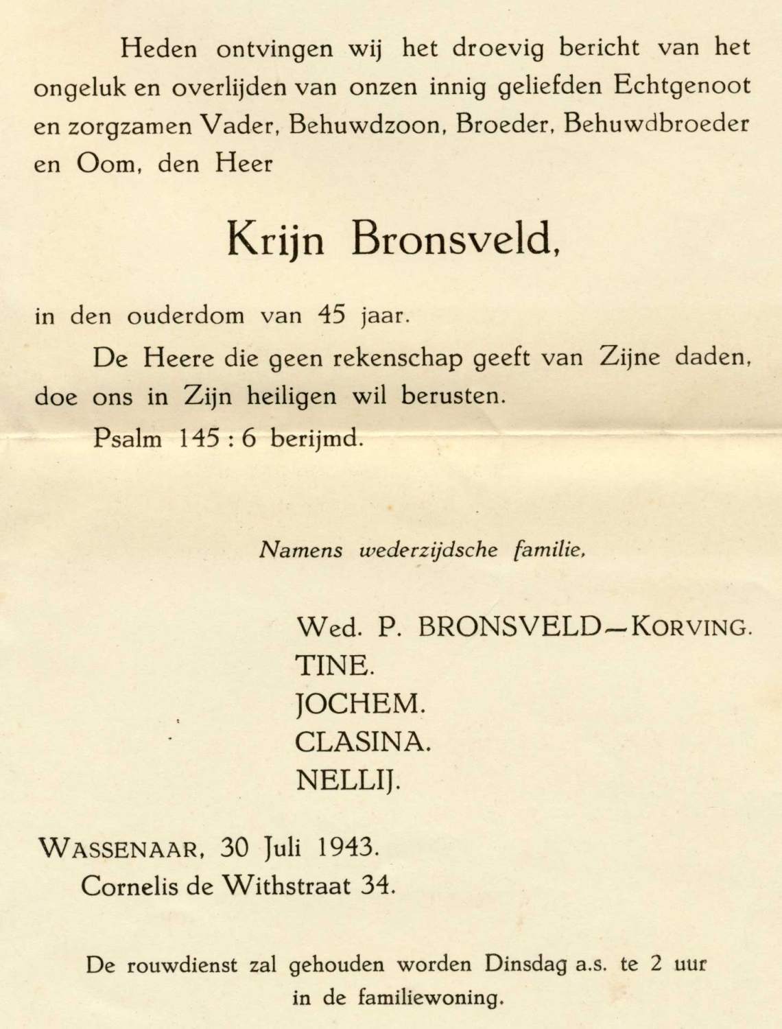 Cornelis Pronk werd ook uit het water gehaald maar overleed enige ogenblikken daarna.