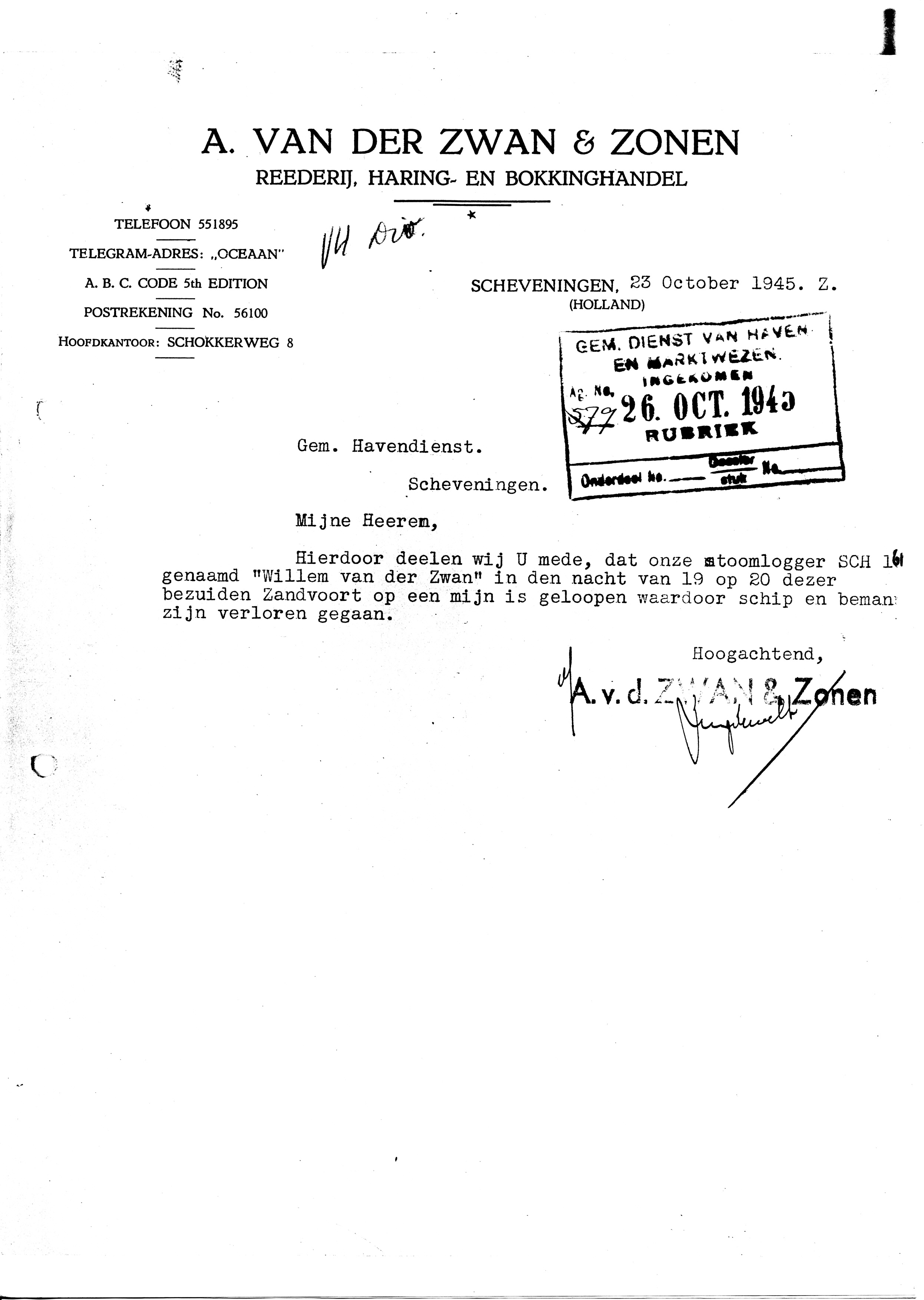 * Dirk van Duijvenbode: zijn vader Jacob- kwam in oktober 1903 om op bomschuit SCH-1 'Clara Johanna.' Zijn broer Cornelis- kwam in september 1911 om op de SCH-460 'Rotterdam.