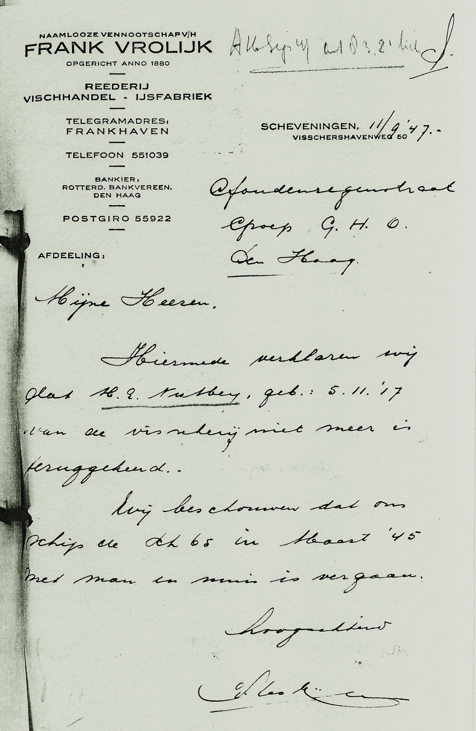 * Martinus Engel Nutbeij: zijn vader Hendrik- kwam in april 1941 om op de SCH 135 'Cornelia Maria.'