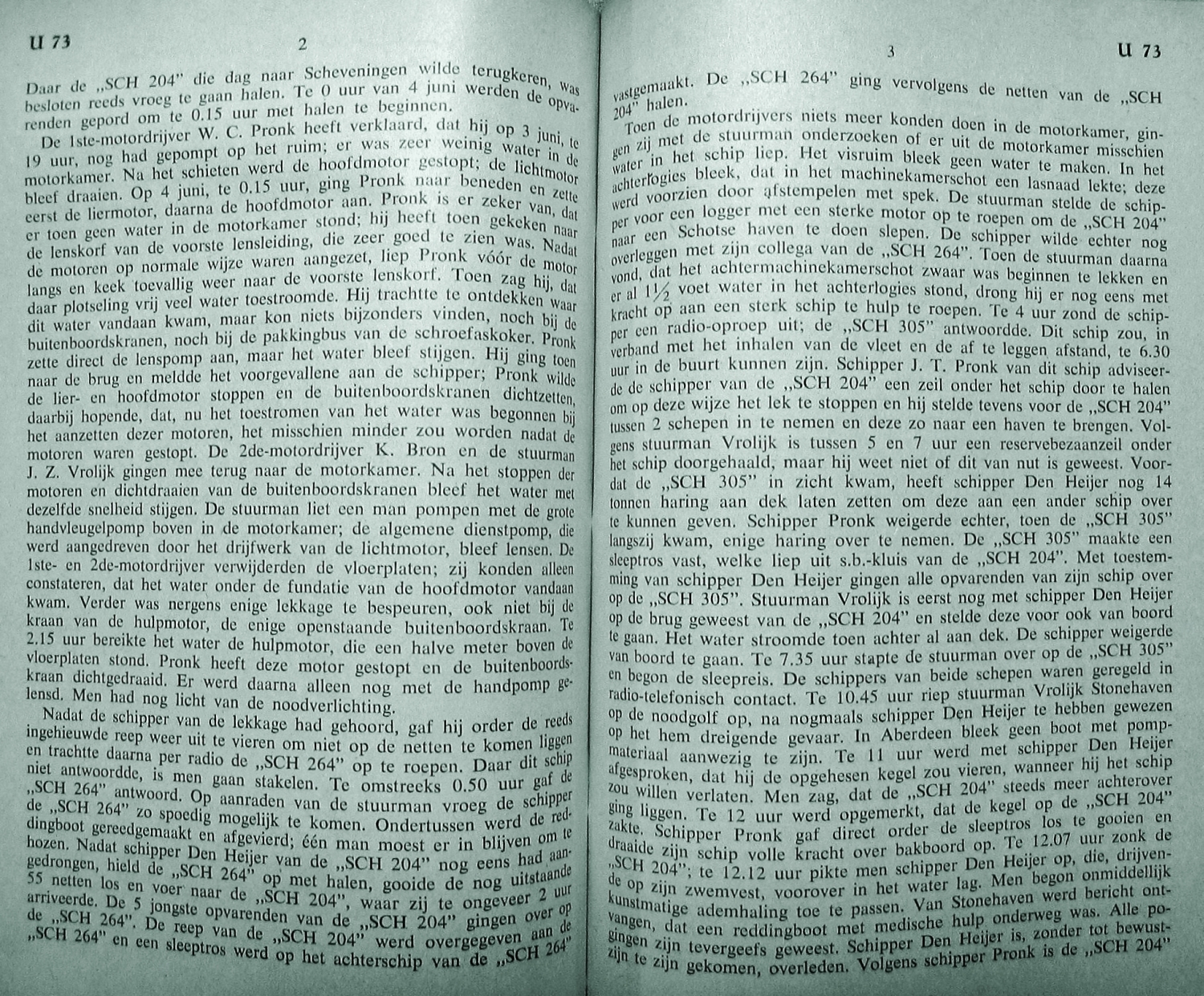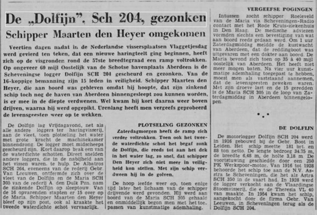 De lekgeraakte logger werd door de SCH 305 naar het Schotse Aberdeen gesleept. De schipper bleef daarbij alleen aan boord. De logger zonk echter tijdens de sleep waarbij schipper Maarten den Heijer verdronk.